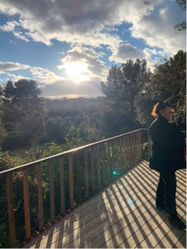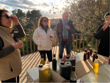 Romain nous a offert un moment convivial de dégustation sur sa terrasse à la vue splendide sous un soleil d’hiver changeant et envoûtant. Nous avons goûté les 2 sortes d’huile et les 2 sortes de jus de grenade : un régal pour les yeux et les papilles.