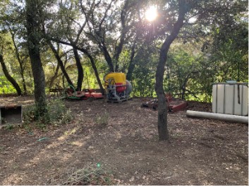 Pour les oliviers, il utilise de la bouillie bordelaise au printemps et parfois en automne ainsi que de l’argile blanche, contre la mouche, 4 à 5 fois par an, essentiellement fin juin-début juillet et, le plus important, en septembre.