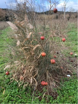 La culture des grenades ne nécessite aucun traitement et Romain a planté une haie agroécologique constituée de 15 essences différentes d’arbustes séparant son champ de la Touloubre.