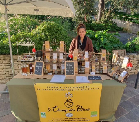 Toutes les plantes qui composent ses produits sont BIO, cultivées, cueillies à la main, sélectionnées et transformées au Champ des Potions à Salon de Provence.